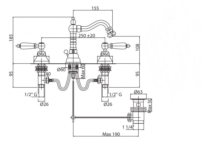 Смеситель для биде на три отверстия, хром Cezares FIRST-BBS2-01-Bi