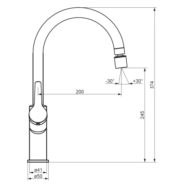• Высота смесителя:
