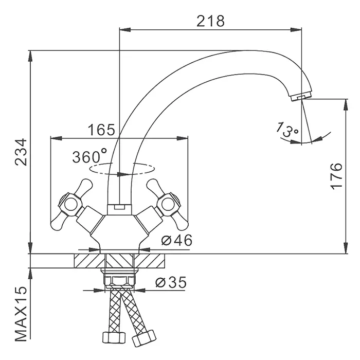 • Высота смесителя: