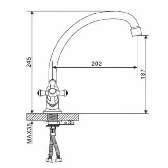 • Высота смесителя: