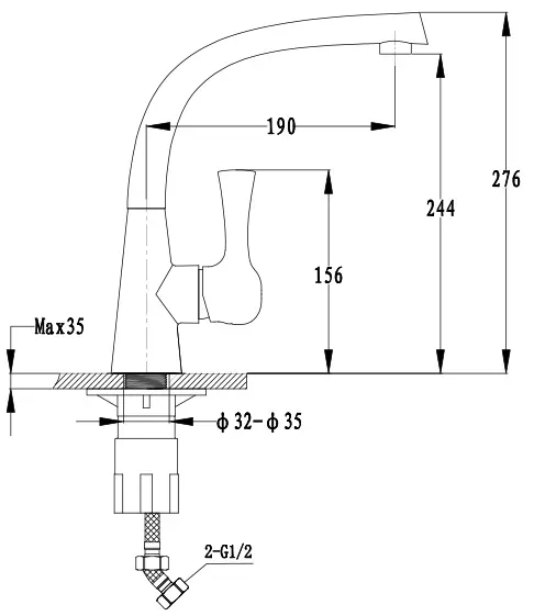 • Высота смесителя:
