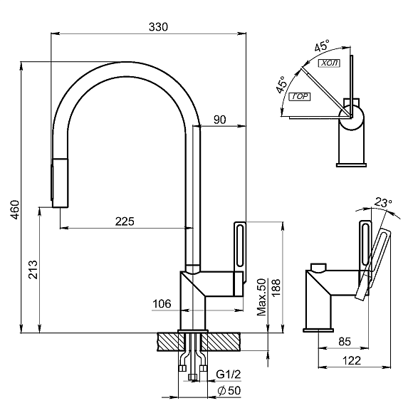 Смеситель для кухни Granula 8172, ТУРМАЛИН Турмалин