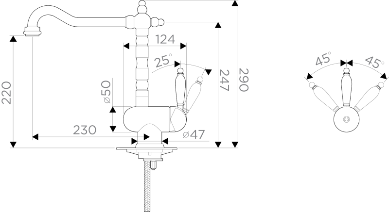 • Классический дизайн и удобство использования, благодаря высокому изливу; • Цвет: 015.Античная Медь; • Высококачественная латунь сохранит воду чистой и здоровой; • Аэратор произведен из пластика, благодаря чему на нем никогда не появится известкового налета и ржавчины; • Коробка внутри проложена поролоном, который обеспечит сохранность изделия при транспортировке; • Полный набор креплений, соединительных шлангов, подробная инструкция и гарантийный талон в комплекте;