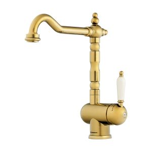 • Классический дизайн и удобство использования, благодаря высокому изливу; • Цвет: 005.Золото; • Высококачественная латунь сохранит воду чистой и здоровой; • Аэратор произведен из пластика, благодаря чему на нем никогда не появится известкового налета и ржавчины; • Коробка внутри проложена поролоном, который обеспечит сохранность изделия при транспортировке; • Полный набор креплений, соединительных шлангов, подробная инструкция и гарантийный талон в комплекте;
