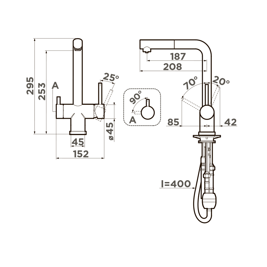 • Высокий излив обеспечивает максимально удобное использование смесителя;