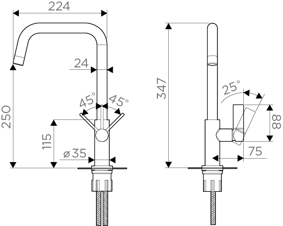 • Гибкий излив: