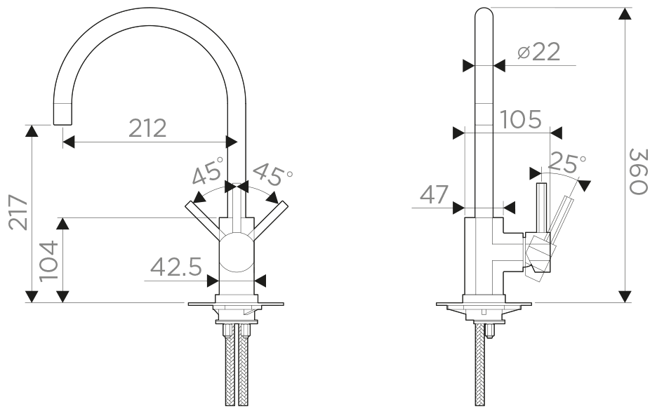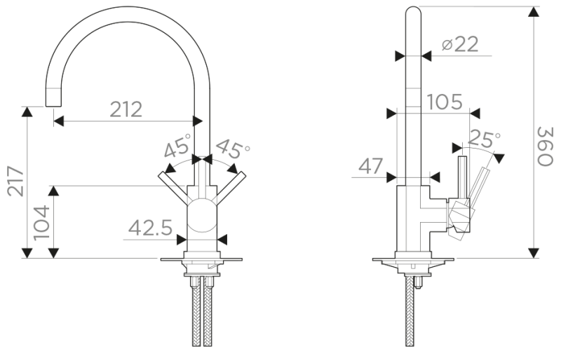 • Гибкий излив: