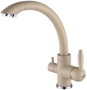 Смеситель для кухни однорычажный, с возможностью подключения фильтра питьевой воды, артикул Es213001-428Материал корпуса - латунь высокого качества. Многослойное, стойкое к истиранию покрытие. Долговечный керамический картридж диаметром 35 мм. Керамический переключатель на фильтр питьевой воды. Съемный пластиковый аэратор, который обеспечивает мягкую струю, ровный и экономичный поток воды. Простой монтаж, стандартное подключение.