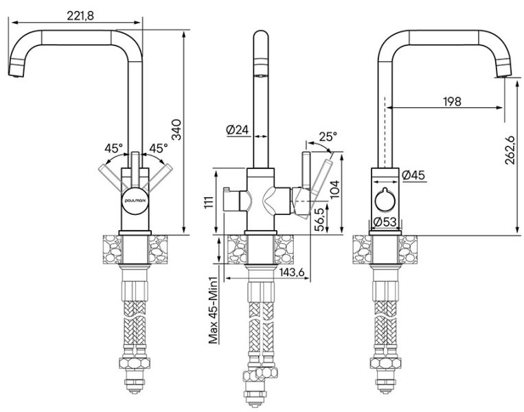 Конструктивная технология Trinkwasser® предусматривает поступление фильтрованной воды, которая не смешивается с водопроводной. Фильтрованная вода подается через отдельные трубку и аэратор.