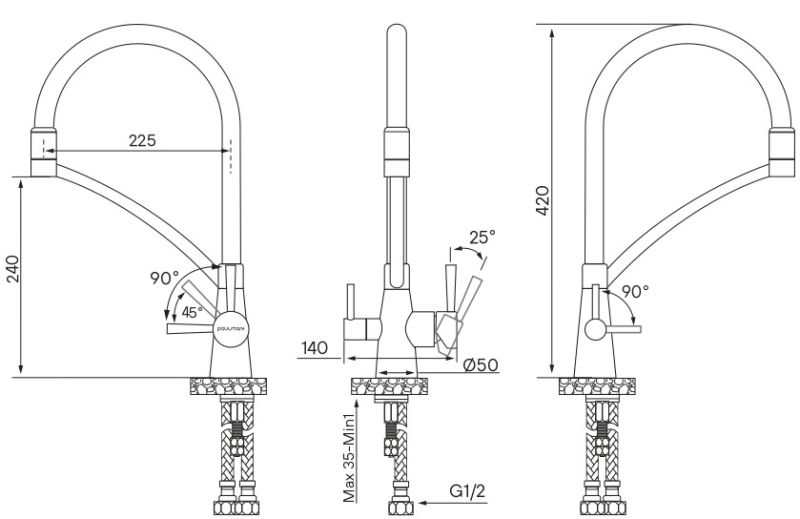 • Высота смесителя:
