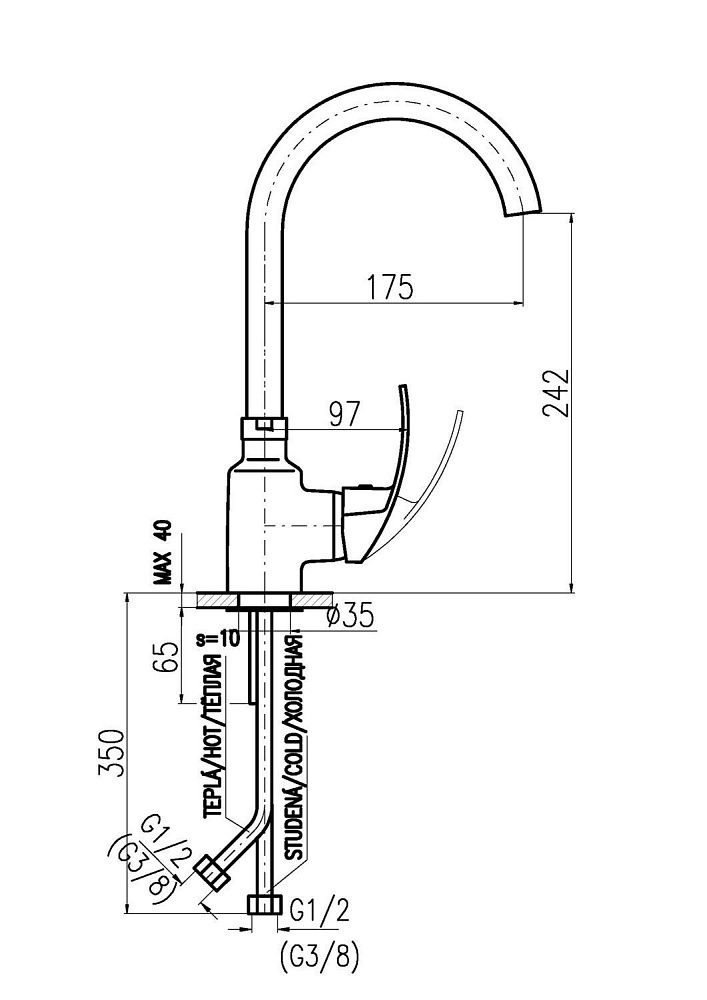 • Высота смесителя: