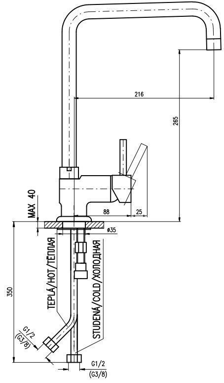 • Высота смесителя: