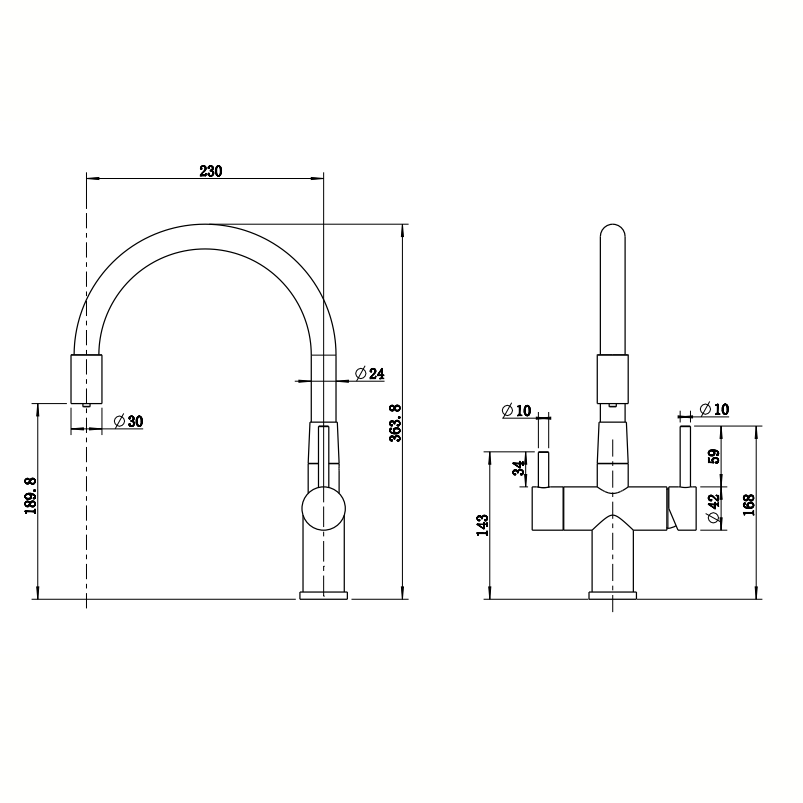 • Гибкий излив: