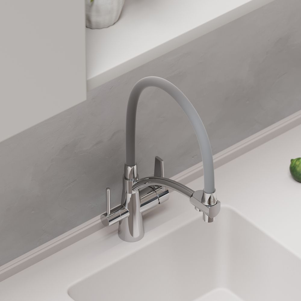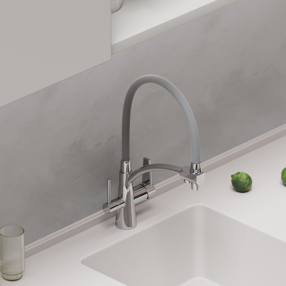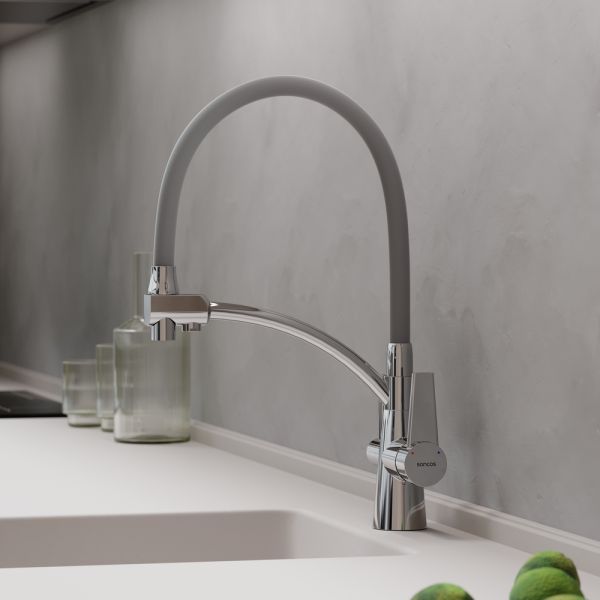 Смеситель для кухни SANCOS Eri с гибким изливом и возможностью подключения фильтра для воды, цвет хром, арт. SC4001CHС возможностью регулировки температуры водыАэратор, гибкая подводка, ключ и крепления для монтажа, ключ для обслуживания аэратора