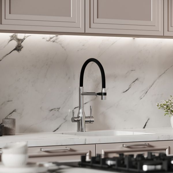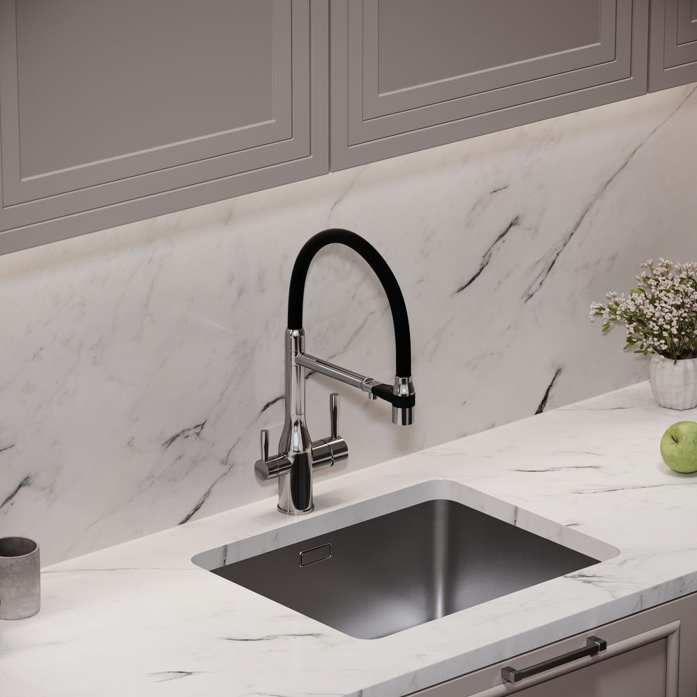 Смеситель для кухни SANCOS Garda с гибким изливом и возможностью подключения фильтра для воды, цвет хром, арт. SC4009CHФункция "Холодный старт" - при включении смесителя активируется холодной поток, для экономии горячей водыАэратор, гибкая подводка, ключ и крепления для монтажа