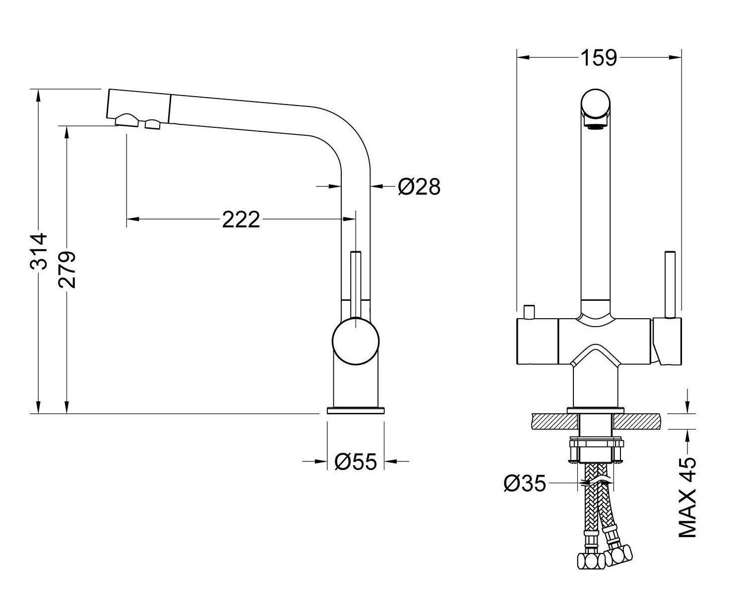 - Высота смесителя:31.4