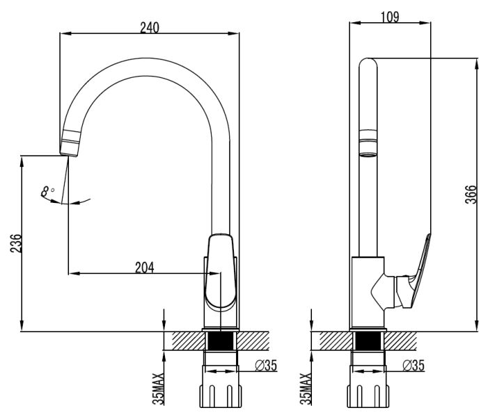 - Высота смесителя:36.6