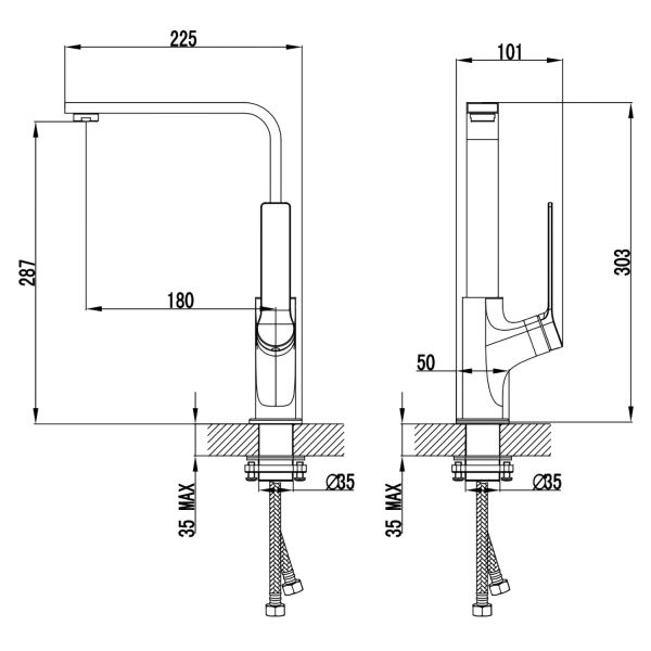 • Высота смесителя: