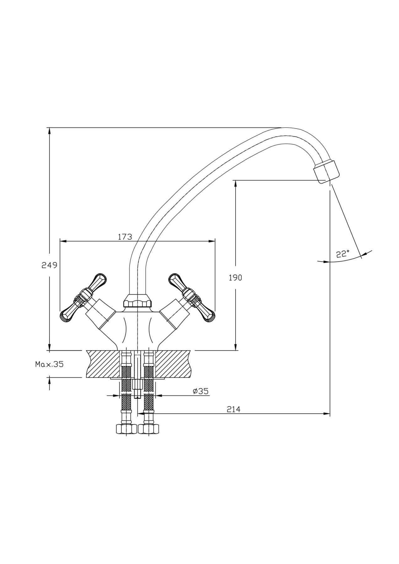 • Высота смесителя: