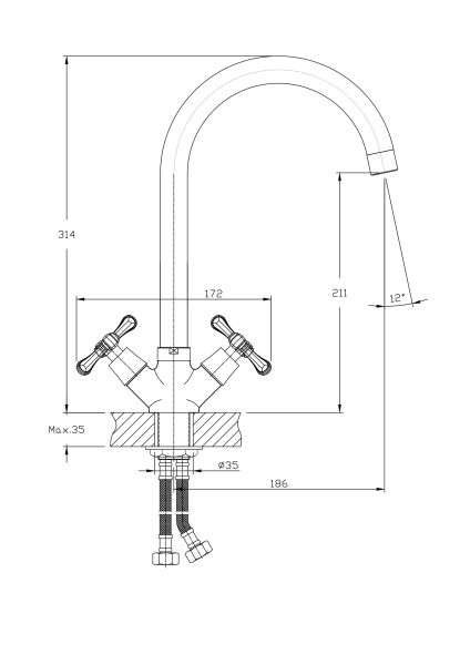 Смеситель для кухни RUSH арт. BI7650-24 с высоким поворотным изливом с металлической ручкой из коллекции Bianki изготовлен из высококачественной латуни и имеет вентильное управление.В смеситель установлены кран-буксы (RSH502) с керамическими пластинами. Высота смесителя 314 мм. Излив поворотный 186 мм. Высота излива до аэратора 211 мм. Аэратор изготовлен из пластика с нержавеющим корпусом, угол наклона - 12 гр. В комплекте гибкая подводка с латунными гайками 35см - 2 шт, присоединительная гайка S-30мм, втулка-27мм, фум-лента, индивидуальный пакет, паспорт, гарантийный талон.