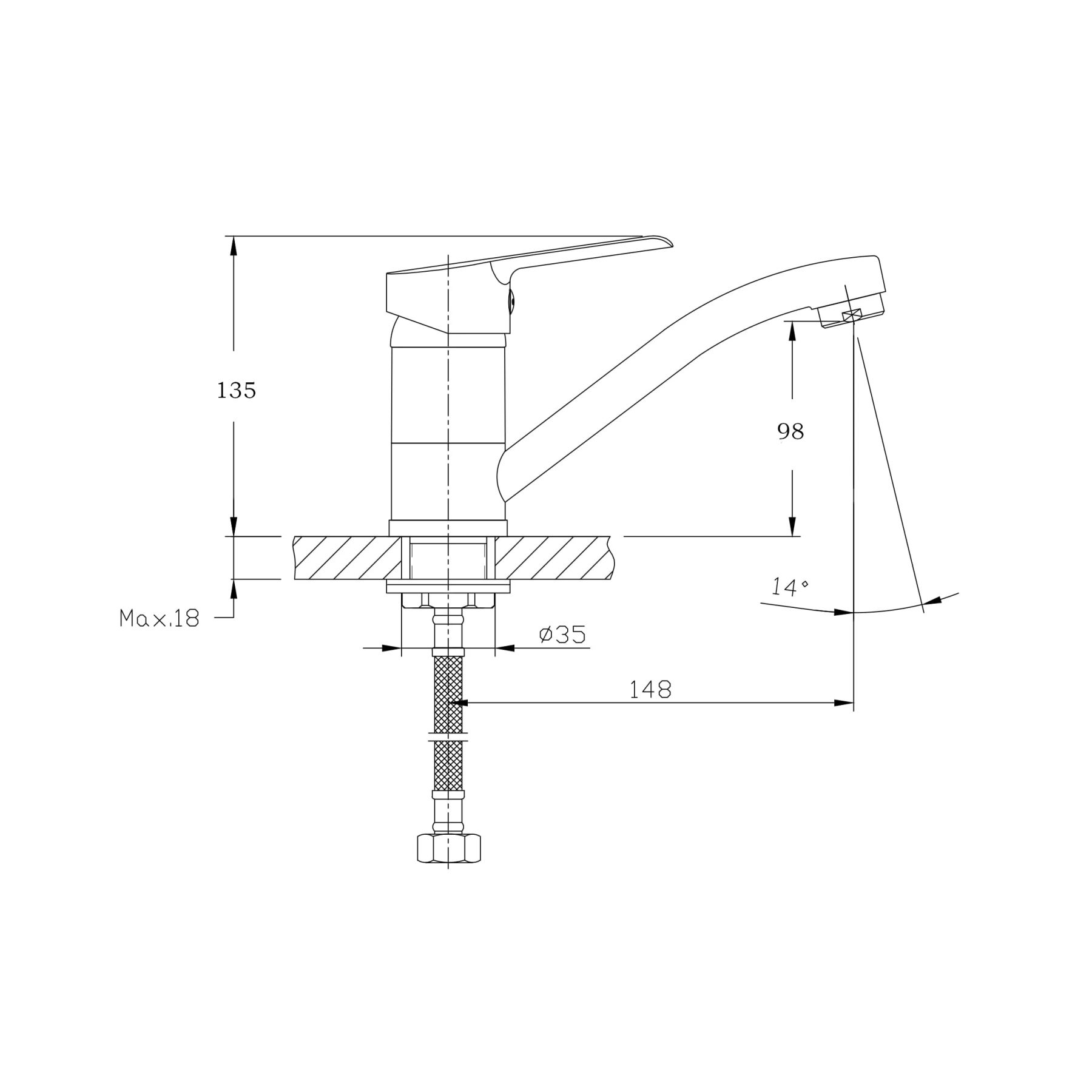 Смеситель для кухни с поворотным изливом RUSH арт. VI7135-26 с металлической ручкой из коллекции Victoria изготовлен из высококачественной латуни и имеет рычажное управление.В смеситель установлен картридж D-35 (RSH102) с керамическими пластинами. Высота смесителя 109 мм. Излив поворотный, 148 мм. Высота излива до аэратора 78 мм. Аэратор изготовлен из пластика с нержавеющим корпусом, угол наклона - 14 гр. В комплекте гайка S-30мм, втулка-27мм гибкая подводка с латунными гайками 35см - 2шт, фум-лента, индивидуальный пакет, паспорт, гарантийный талон.