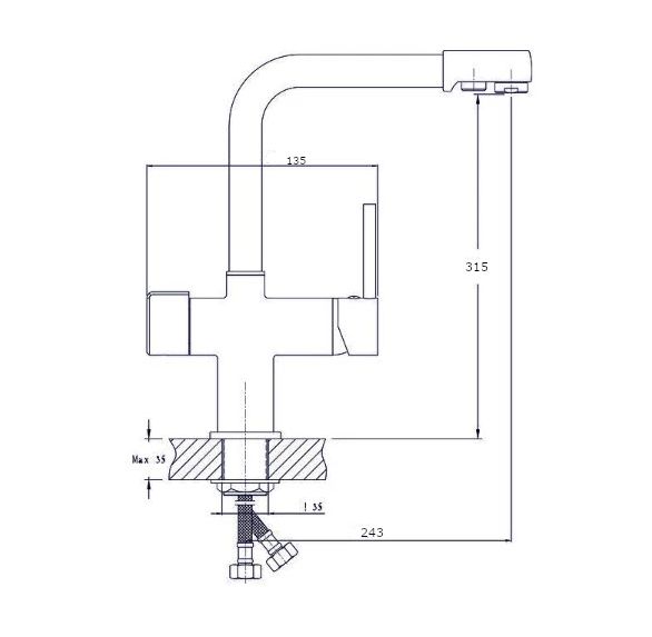 Смеситель для кухни с подключением к фильтру с питьевой водой RUSH арт. MS9035-33Black изготовлен из высококачественной латуни и имеет рычажное управление.В смеситель установлен картридж D-35 с керамическими пластинами. Излив поворотный, 243 мм. Высота излива до аэратора 315 мм. Аэратор изготовлен из пластика с нержавеющим корпусом.В комплекте кран-букса с керамическими пластинами (для крана с питьевой водой) гибкая подводка с латунными гайками 35 см - 2шт, универсальная присоединительная группа, фум-лента, индивидуальный пакет, паспорт, гарантийный талон.