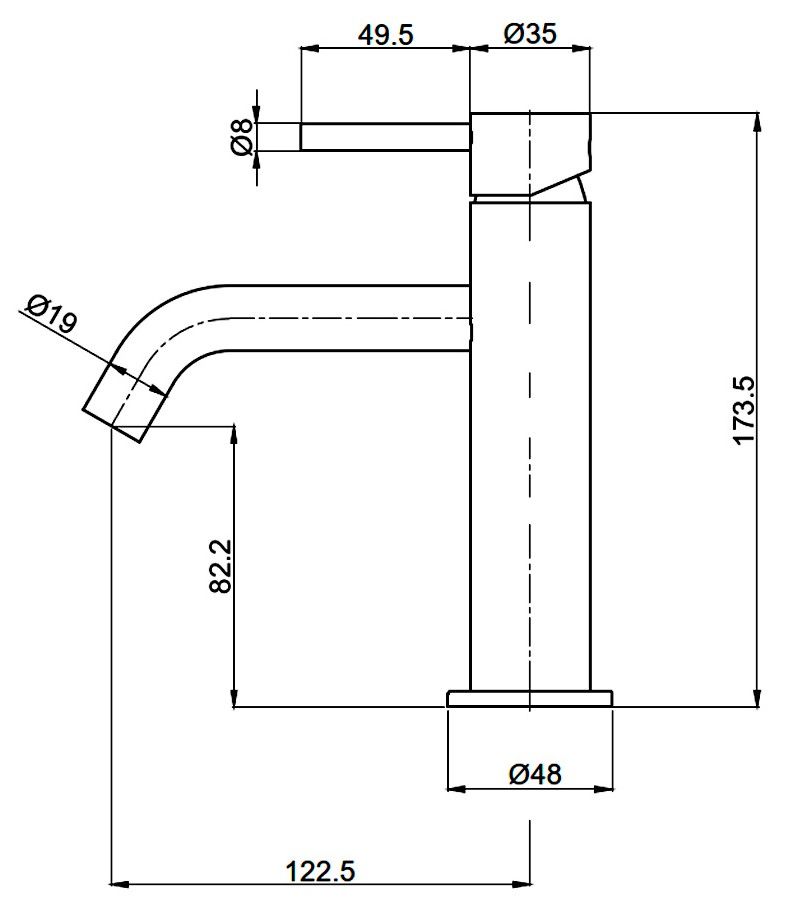 • Высота смесителя: