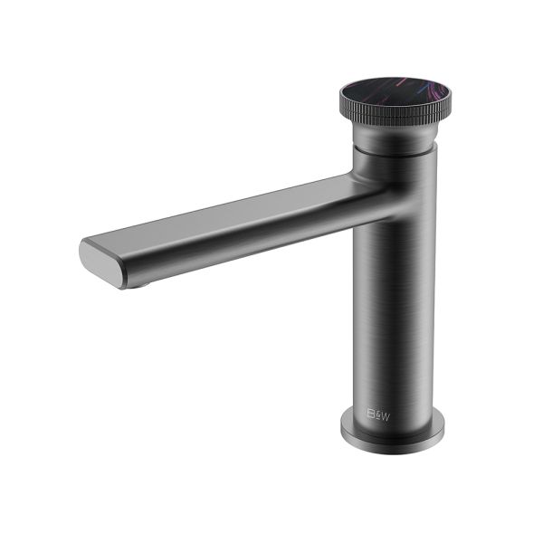 Смеситель для раковины датского производителя Black&White в цвете оружейная сталь. Материал корпуса – сантехническая латунь марки HPB 59,безопасный для здоровья и высокоресурсный сплав.Для  настройки температуры  установлен керамический картридж прогрессивного типа – давление выдается постоянным , а температура выставляется с помощью круглой ручки с насечками расположенной сверху корпуса. В изделии пересекаются цилиндрические и прямоугольные формы, которые гармонично вольются в современные интерьеры ванных комнат.