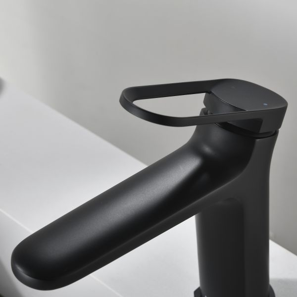 Смеситель для раковины датского производителя Black&White черного матового цвета. Материал корпуса – сантехническая латунь, безопасный для здоровья и ресурсный сплав, с порошковой окраской. Управление потоками воды и настройка температуры осуществляется с помощью керамического картриджа.Важным функциональным и эстетическим решением стоит отметить возвышение излива на 10 градусов  и ручки управления на 25 градусов относительно плоскости– это создает стремительные линии, а также минимизирует количество подтеков на корпусе когда Вы моете руки .