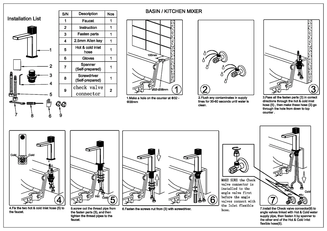 • Высота смесителя: