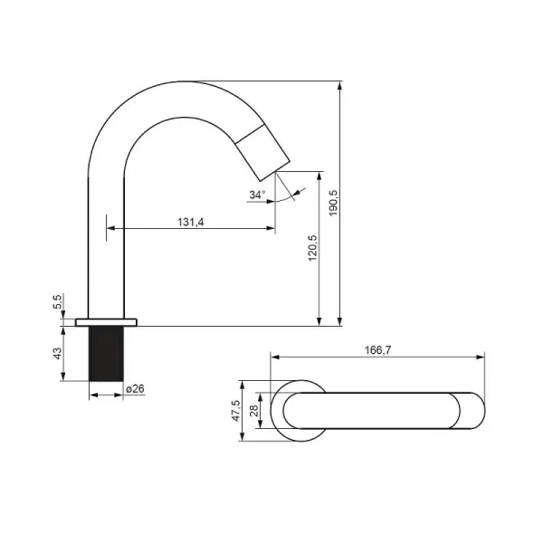 • Длина излива, см: