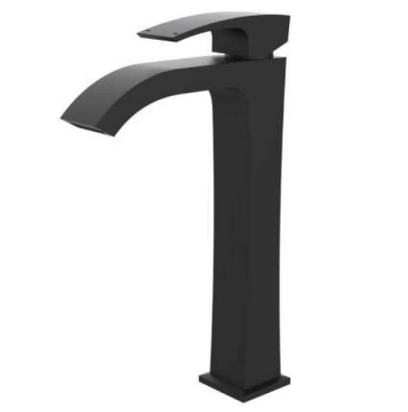 Смеситель для умывальника Gappo Jacob G1007-86 - высокая однорычажная модель с каскадным изливом. Цвет - черный.