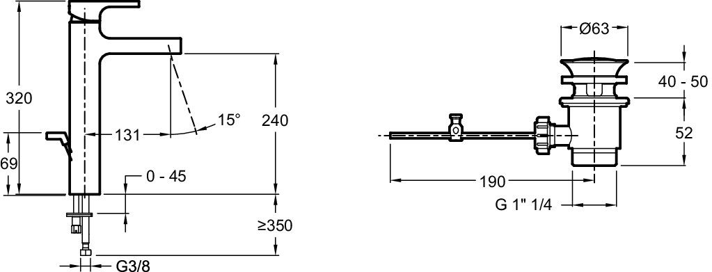 • Высота смесителя: