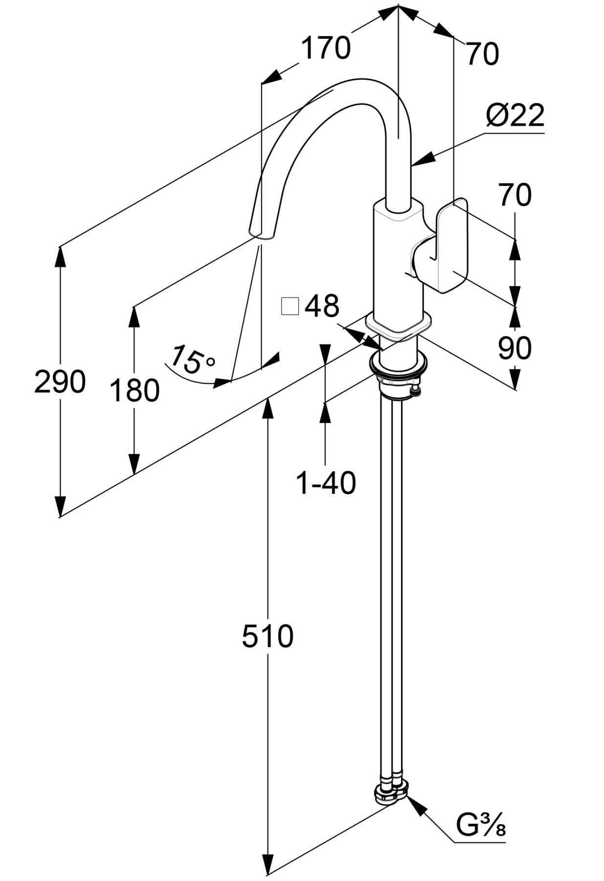 • Высота смесителя: