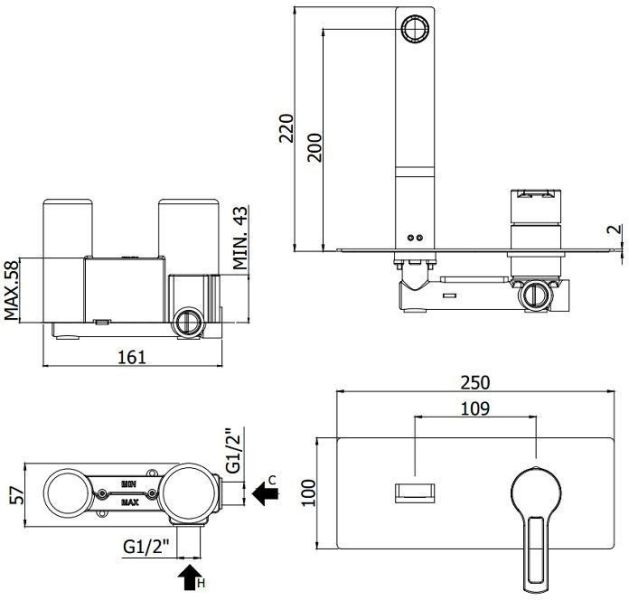 Смеситель для раковины Paffoni Ringo RIN105BO (с внутренней частью)