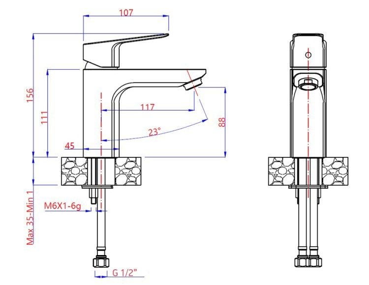 • Высота смесителя: