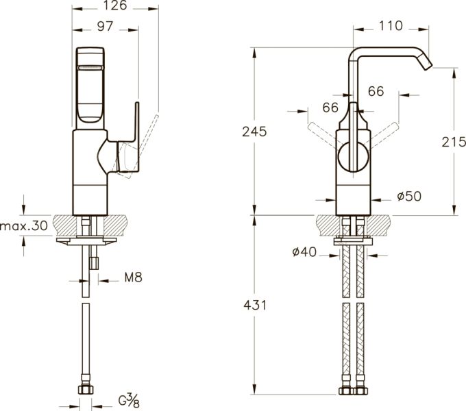 • Высота смесителя: