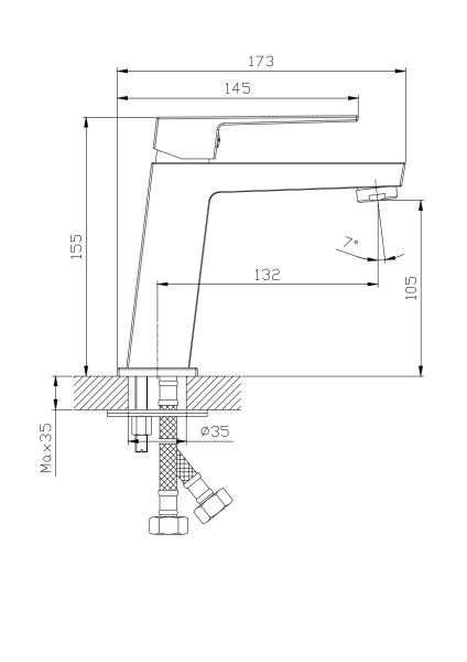Смеситель для раковины RUSH арт. TR3635-12White с металлической ручкой из коллекции Thira изготовлен из высококачественной латуни и имеет рычажное управление.В смеситель установлен Картридж с керамическими пластинами D-25 . Высота смесителя 156мм. Излив не поворотный, 132м. Высота излива до аэратора 105мм, аэратор изготовлен из пластика с нержавеющим корпусом, угол наклона -7 гр. Универсальная присоединительная группа для установки на горизонтальную поверхность (шпилька), гибкая подводка с латунными гайками 35см - 2шт, фум-лента, индивидуальный пакет, паспорт, гарантийный талон.