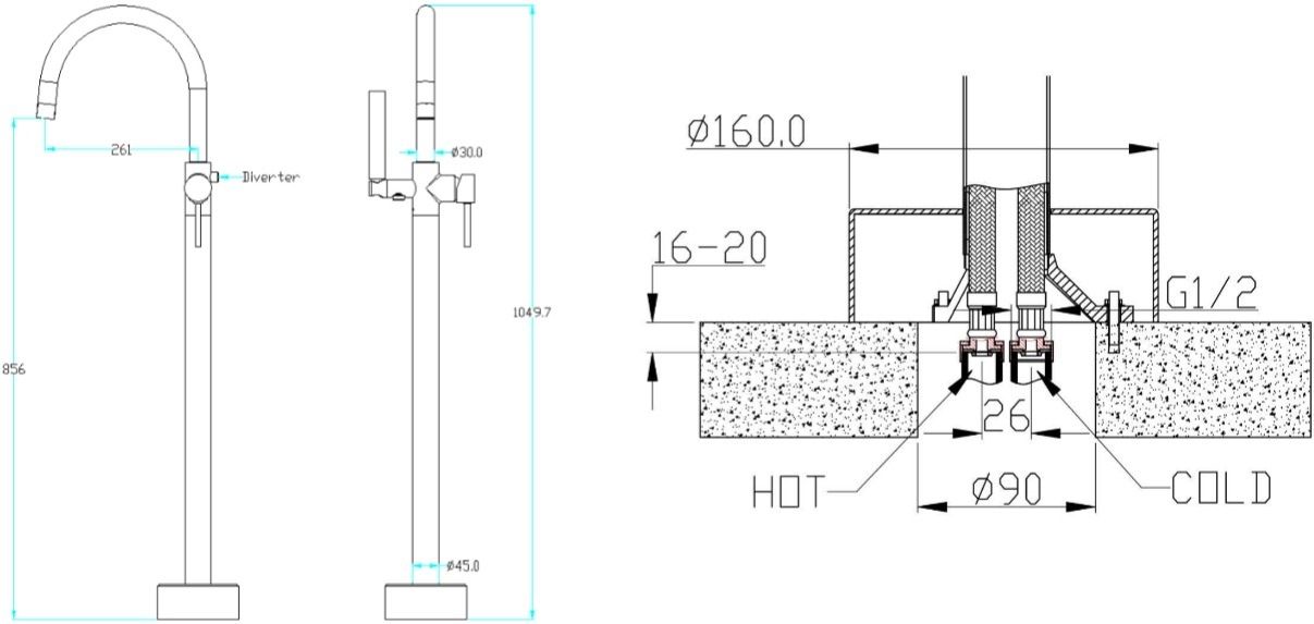 Смеситель Brillante итальянской компании Boheme предназначен для оборудования отдельно стоящей ванны. Фиксированный излив с аэратором позволит наполнить ванну для полного расслабления, а ручная лейка с удобным гибким шлангом, фиксируемая на держателе, поможет в проведении гигиенических процедур. Для изготовления комплекта используется высококачественная латунь с глянцевой хромированной поверхностью, на которой не размножаются бактерии и не задерживаются загрязнения. Модель надежна и безопасна в эксплуатации.Латунь