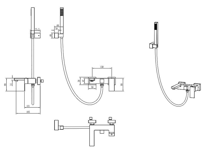 Смеситель для ванны Boheme Qubic 473-B с душевым гарнитуром.Характеристики:Цвет: черный матовый.