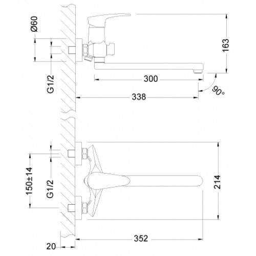 Артикул LM0451CСмеситель универсальный с плоским поворотным изливом 300 мм