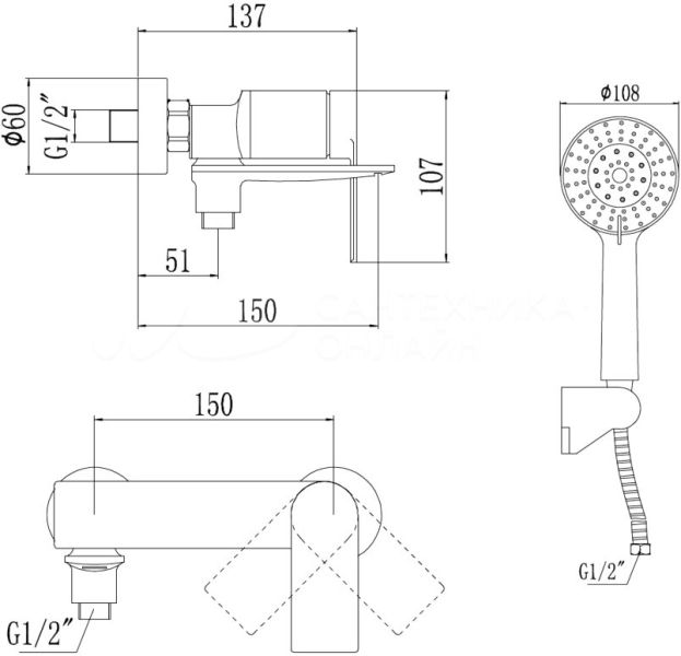 Длина шланга: 150 см