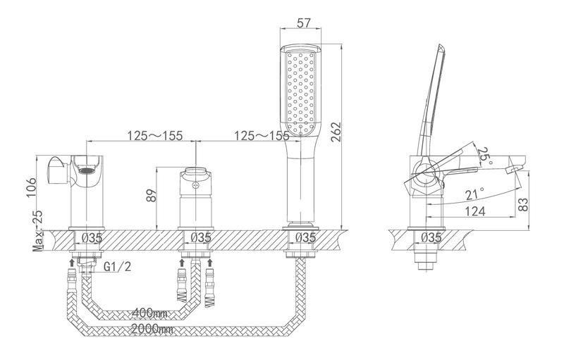 Смеситель на борт ванны DQ Marx Rhein DA1394941 врезной на борт ванны, однорычажный, на три отверстия для монтажа.