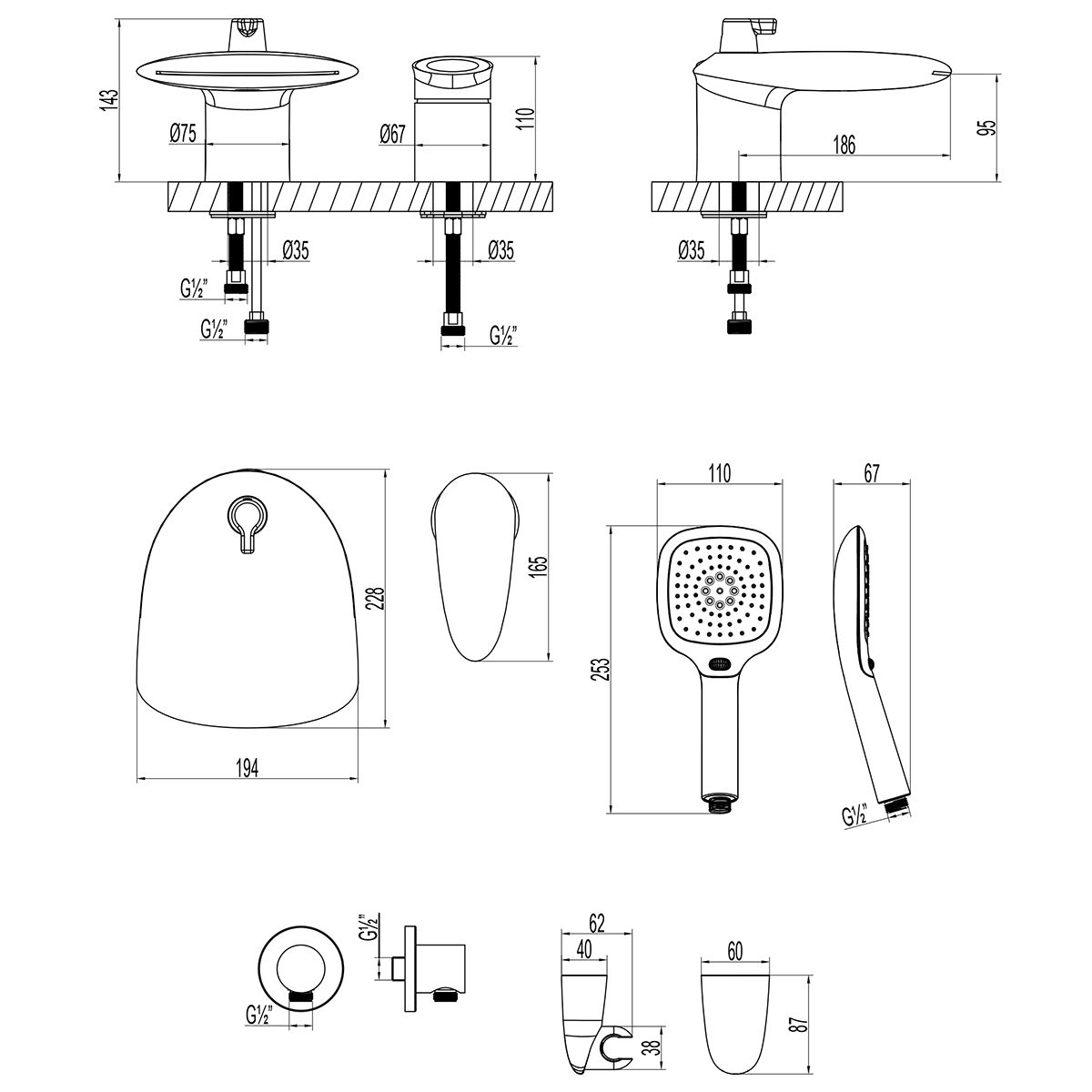 • Аксессуары в комплекте: душевой шланг 2 м, 3-функциональная лейка 111х253 мм