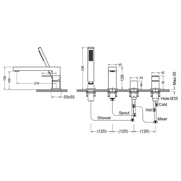 - Смеситель врезной - 1 шт.