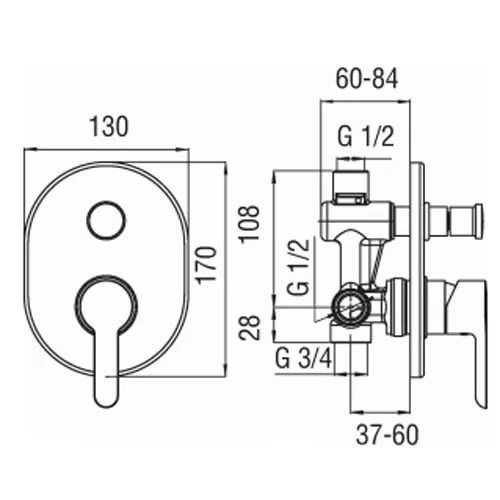 Встроенный однорычажный смеситель на 2 положения