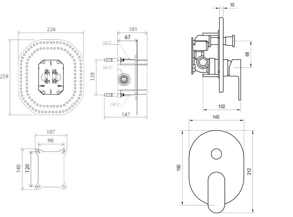 • подходит: к ваннам (заполнение переливом и вывод для ручного душа) или душевым уголкам, имеющим фиксированный и ручной душ