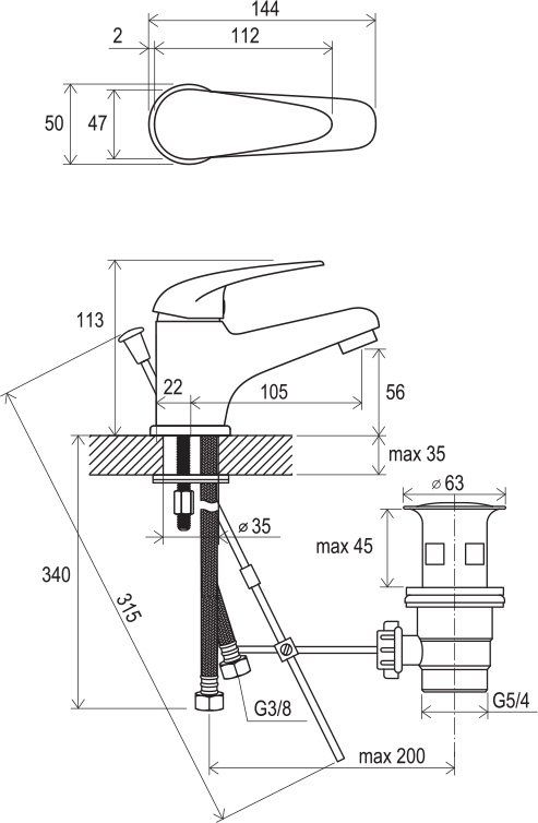 • Высота смесителя: