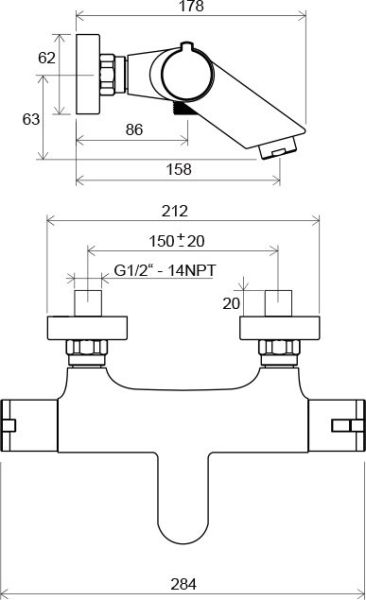• межосевой размер смесителя : 150 мм