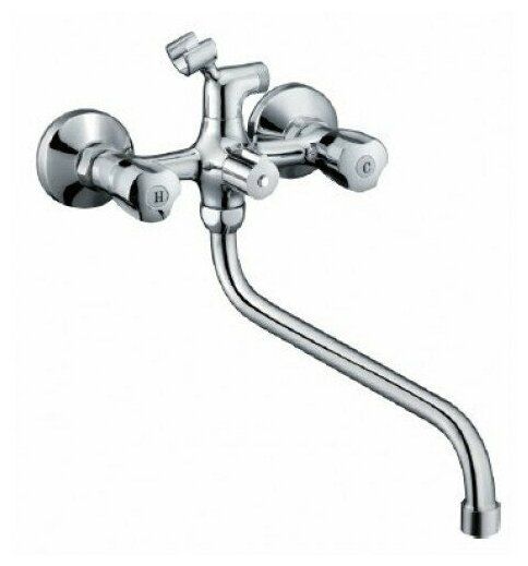 Смеситель для ванны Gappo G2244 - двухвентильная модель с керамическими кран-буксами, с длинным поворотным изливом. Смеситель изготовлен из латуни. Цвет - хром.